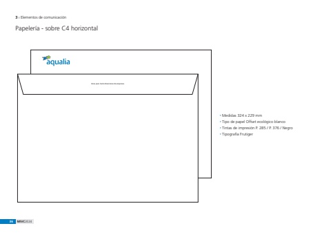 36 MIVC2024Papeler%u00eda - sobre C4 horizontal3 %u0131 Elementos de comunicaci%u00f3n%u0082 Medidas 324 x 229 mm%u0082 Tipo de papel Offset ecol%u00f3gico blanco%u0082 Tintas de impresi%u00f3n P. 285 / P. 376 / Negro%u0082 Tipograf%u00eda FrutigerZona para texto direcciones de empresas