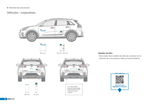 46 MIVC20243 %u0131 Elementos de comunicaci%u00f3nVeh%u00edculos - corporativosEjemplo: Kia Niro%u0082 Para rotular otros modelos de veh%u00edculos consultar con la Direcci%u00f3n de Comunicaci%u00f3n, Marca y Asuntos P%u00fablicosDESCARGASdescarga aqu%u00edlogotipos y recursosEco o el%u00e9ctricoeco100% el%u00e9ctrico40 cm 10 cm 10 cmEco o el%u00e9ctrico Eco o el%u00e9ctricoSi no fuera posible colocar el logo centrado se posicionar%u00e1 al mismo tama%u00f1o en la parte izquierda.20 cm 10 cmeco100% el%u00e9ctrico