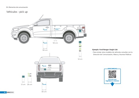 48 MIVC20243 %u0131 Elementos de comunicaci%u00f3nVeh%u00edculos - pick upEjemplo: Ford Ranger Single Cab%u0082 Para rotular otros modelos de veh%u00edculos consultar con la Direcci%u00f3n de Comunicaci%u00f3n, Marca y Asuntos P%u00fablicosDESCARGASdescarga aqu%u00edlogotipos y recursoseco100% el%u00e9ctrico12 cmEco o el%u00e9ctrico50 cmServicio Municipalde Aguas de localidad30 cmeco100% el%u00e9ctrico12 cm 25 cmEco o el%u00e9ctrico30 cm