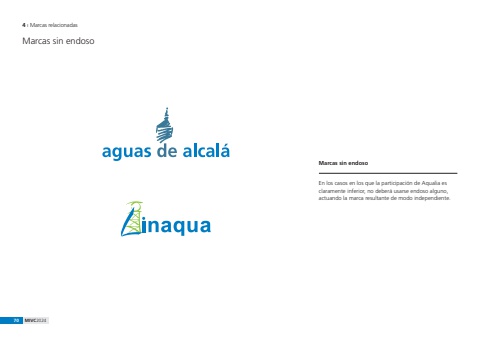 70 MIVC20244 %u0131 Marcas relacionadasMarcas sin endosoMarcas sin endosoEn los casos en los que la participaci%u00f3n de Aqualia es claramente inferior, no deber%u00e1 usarse endoso alguno, actuando la marca resultante de modo independiente.