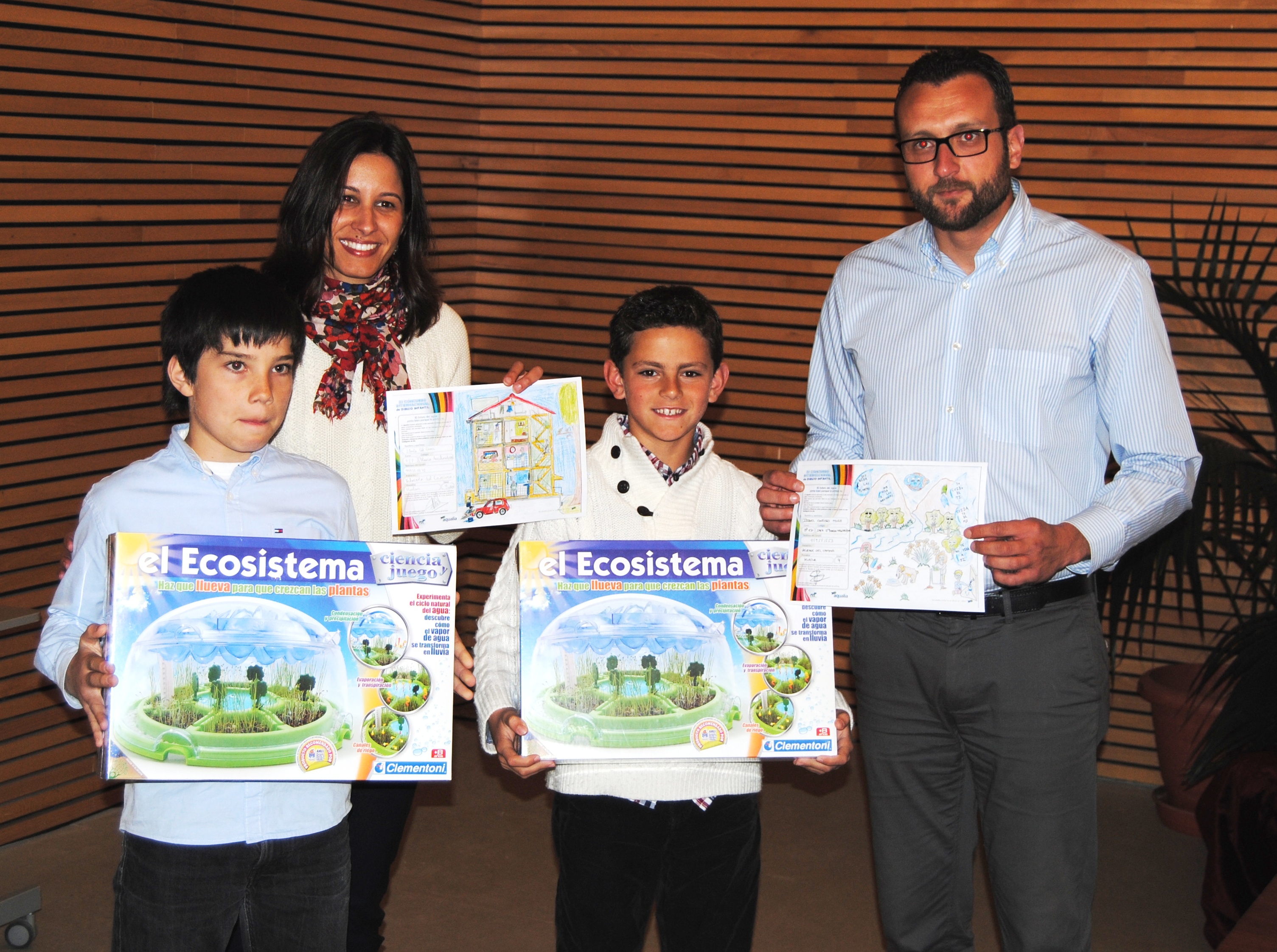 Dos niños de Valverde reciben su premio como finalistas del Concurso Internacional de Dibujo Infantil de aqualia