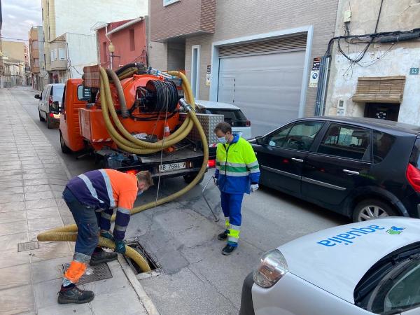 Aqualia, empresa concesionaria del Servicio Municipal de Aguas de Albatera, está llevando a cabo estos días los trabajos de limpieza de los imbornales que existen a lo largo de los 35km de la red de alcantarillado municipal.