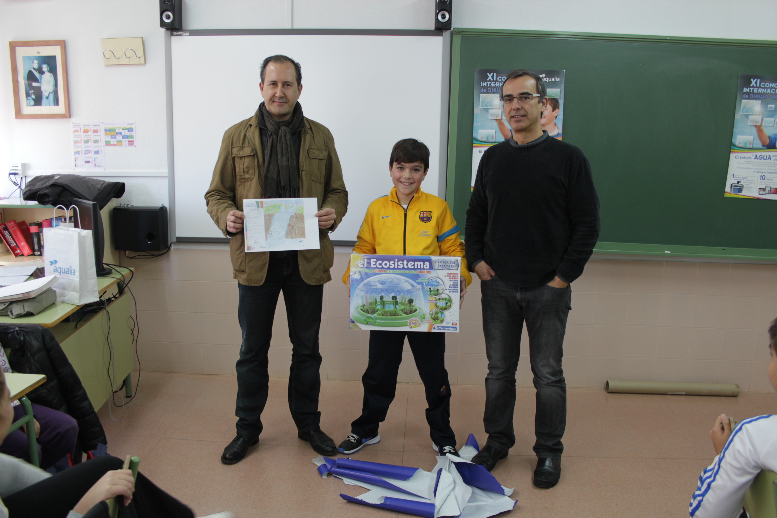 Luis Sánchez, jefe de servicio de aqualia, ha entregado el premio al finalista Daniel Herrero, que ha sido obsequiado con un juego ecosistema con el que podrá analizar la calidad del agua, cultivar plantas, experimentar con el ciclo natural del agua, generar lluvia y mucho más.