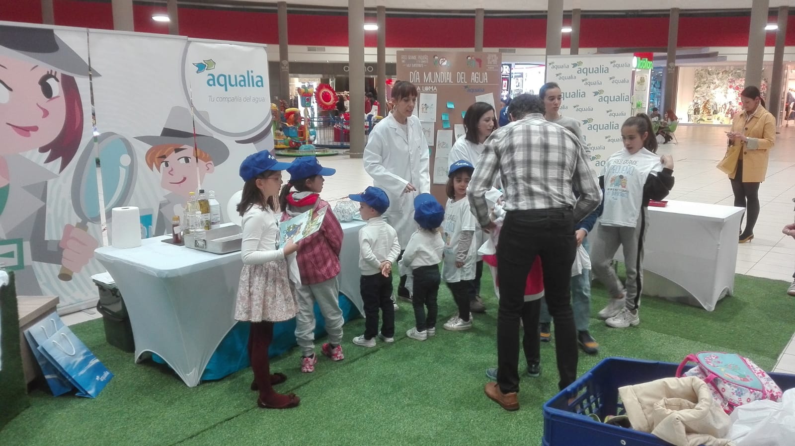 Ambas entidades han colaborado por segundo año conmemorando el Día Mundial del Agua con esta iniciativa para enseñarles de manera divertida la importancia del agua, su uso responsable, o las propiedades físico-químicas del elemento. A través de vídeos educativos adaptados a su edad, experimentos, cómics, dibujos para colorear, etc los pequeños han pasado un divertido rato ejerciendo de “investigadores del agua” en el centro comercial.