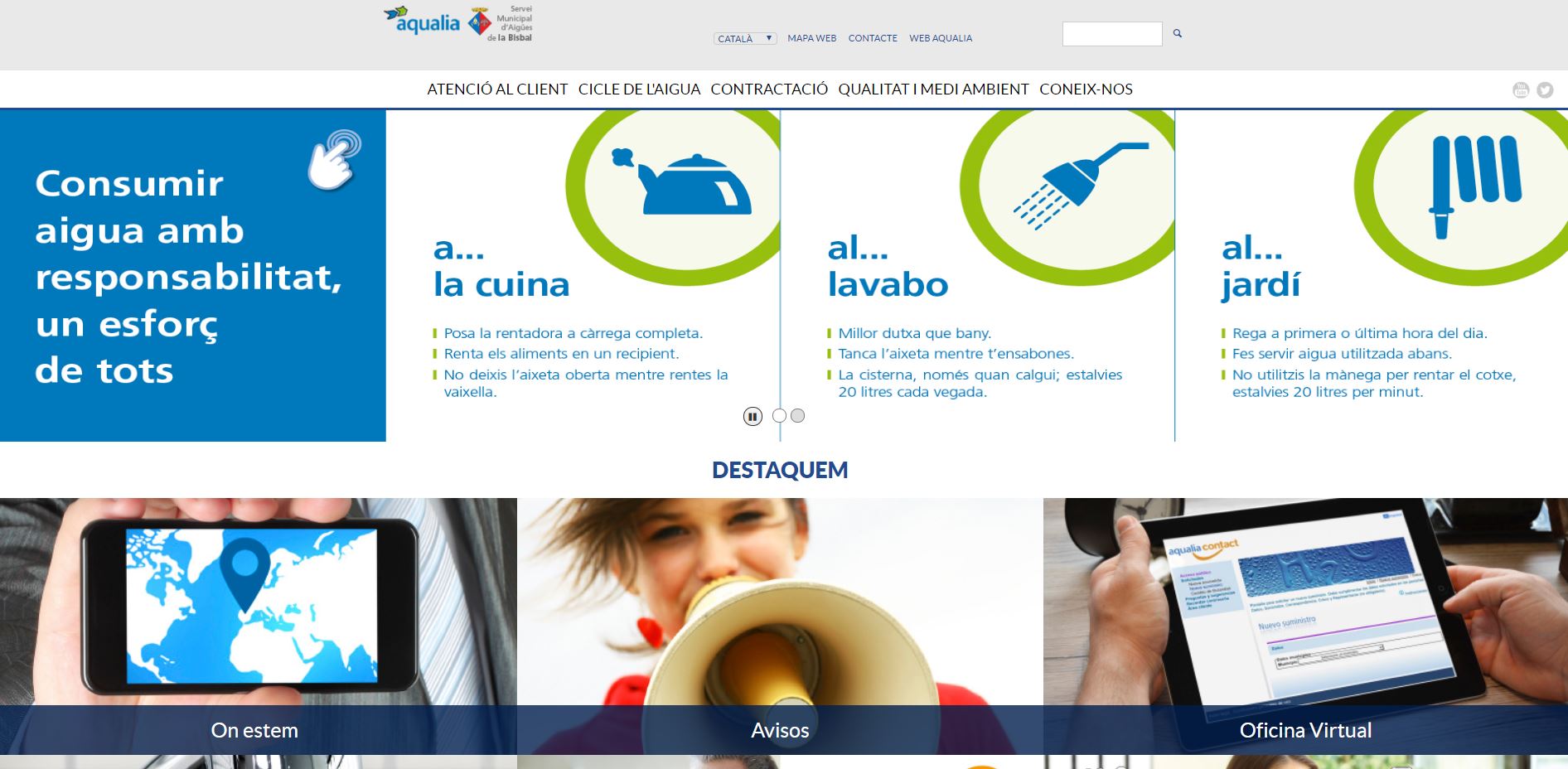 Els veïns de la Bisbal hi trobaran informació sobre el servei, el cicle integral de l’aigua, informació sobre tarifes i gestions i qualitat de l’aigua