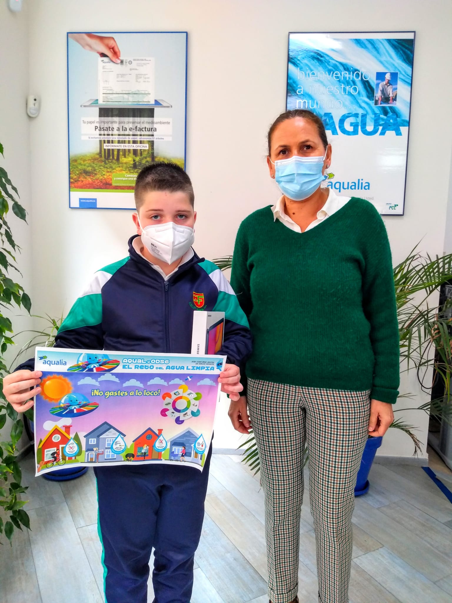 Debido a las medidas de seguridad necesarias por la pandemia, la responsable de Gestión de Clientes de Aqualia en la localidad, Rosa Fernández, les ha entregado en la oficina su premio a cada uno en días diferentes para evitar la acumulación de personas: una Tablet al ganador, y un smartwatch a cada finalista.