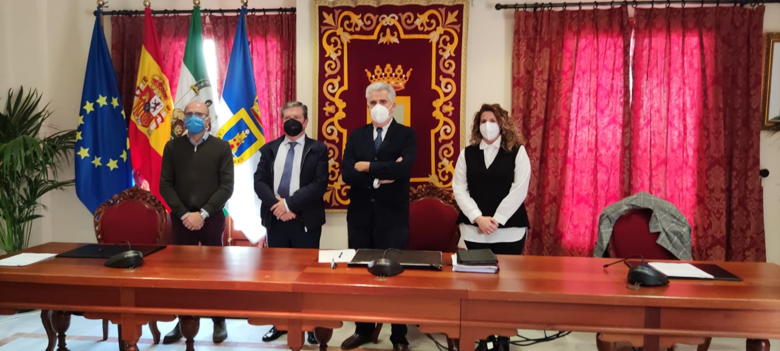 Luis Mario Aparcero, alcalde de la localidad, y Manuel Ferraz, delegado de Aqualia en Cádiz, han sido los encargados de rubricar este acuerdo por el que la empresa aportará este importe de fondos propios con idea de que la Delegación Municipal de Bienestar Social cuente con ellos para poder cubrir, previo estudio, situaciones de necesidad.
