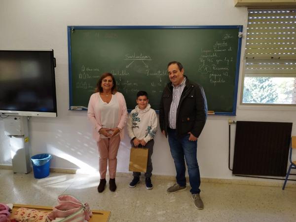 Un niño de Martos recibe en su colegio su premio como finalista del Concurso Digital de Aqualia sobre el cuidado del agua y la Tierra