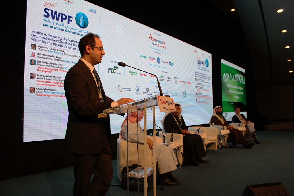 José Enrique Bofill, director de FCC Aqualia para África y Asia ha intervenido en el panel titulado “Evaluating the Route to a Decentralised Stabilised Supply of Power & Water for the Kingdom`s Generations”, sesión que ha contado con la presencia del viceministro de Agua y Electricidad, Dr Mohammed Al-Saud y del Presidente de Moya Bushnak, Dr Adil Bushnak.