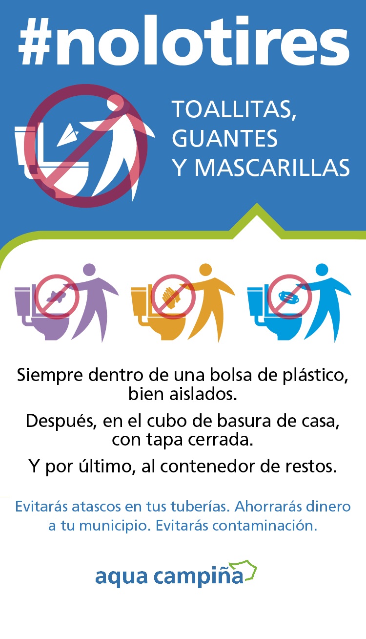 Desde 2016, Aqua Campiña mantiene la campaña #NoLoTires, en la que regularmente ofrece consejos prácticos a los ciudadanos para evitar el uso del inodoro como papelera